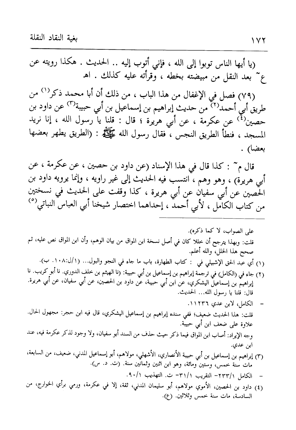 (¬2) جاء في (الكامل) في ترجمة إبراهيم بن إسماعيل بن أبي حبيبة: (نا الهيثم بن خلف الدوري. نا أبو كريب. نا إبراهيم بن إسماعيل اليشكري، عن ابن أبي حبيبة، عن داود بن الحصين، عن أبي سفيان، عن أبي هريرة.