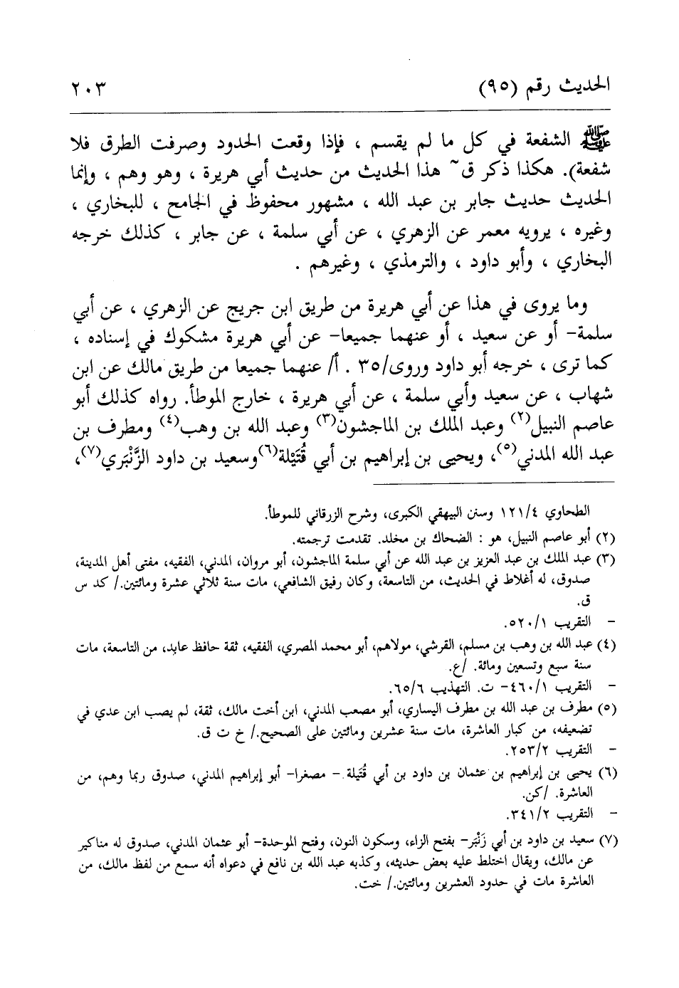 وما يروى في هذا عن أبي هريرة من طريق ابن جريج عن الزهري، عن أبي سلمة -أو عن سعيد، أو عنهما جميعا- عن أبي هريرة مشكوك في إسناده، كما ترى، خرجه أبو داود وروى / 35. أ/ عنهما جميعا من طريق مالك عن ابن شهاب، عن سعيد وأبي سلمة، عن أبي هريرة، خارج الموطأ. رواه كذلك أبو عاصم النبيل (¬2) وعبد الملك بن الماجشون (¬3) وعبد الله بن وهب (¬4) ومطرف بن عبد الله المدني (¬5)، ويحيى بن إبراهيم بن أبي قُتَيْلة (¬6) وسعيد بن داود الزَّنْبَري (¬7)،