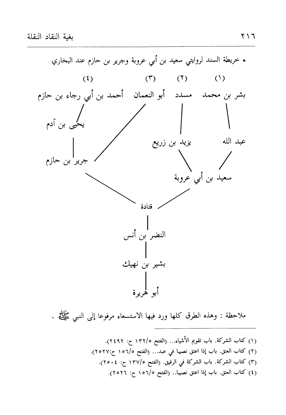 * خريطة السند لروايتي سعيد بن أبي عروبة وجرير بن حازم عند البخاري