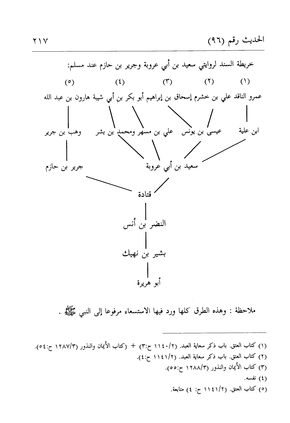 خريطة السند لروايتي سعيد بن أبي عروبة وجرير بن حازم عند مسلم: