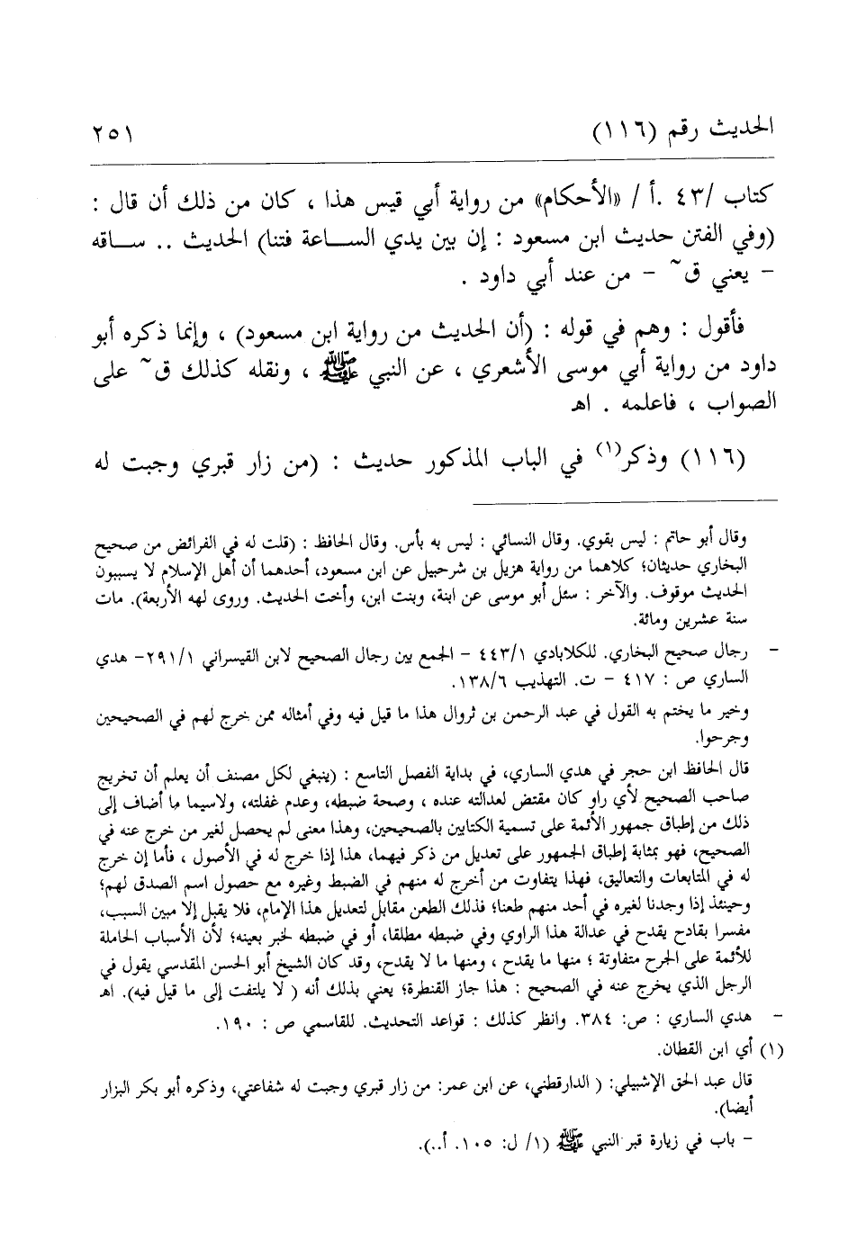 - هدي الساري: ص: 384. وانظر كذلك: قواعد التحديث. للقاسمي ص: 190.