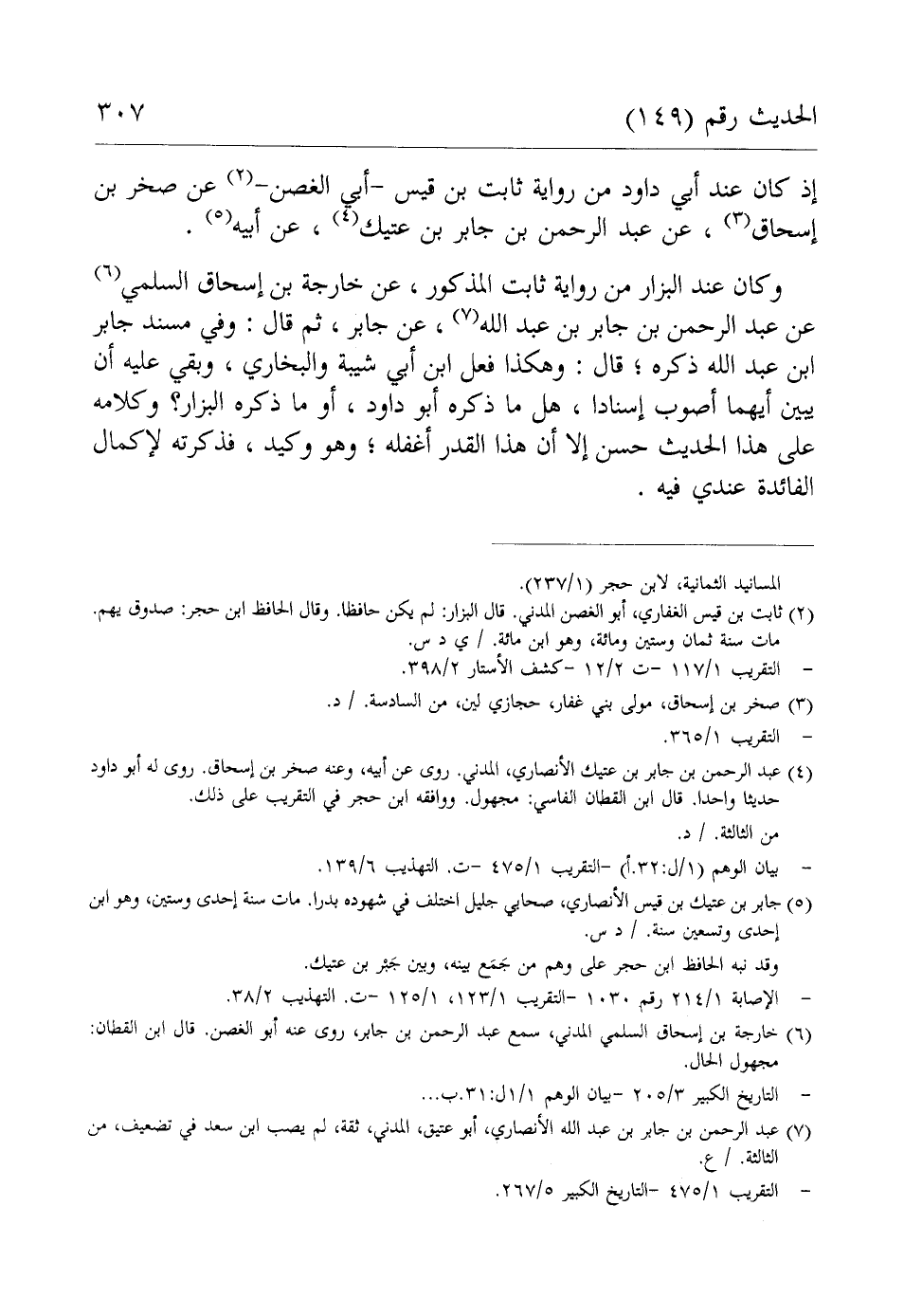 (¬4) عبد الرحمن بن جابر بن عتيك الأنصاري، المدني. روى عن أبيه، وعنه صخر بن إسحاق. روى له أبو داود حديثا واحدا. قال ابن القطان الفاسي: مجهول. ووافقه ابن حجر في التقريب على ذلك.