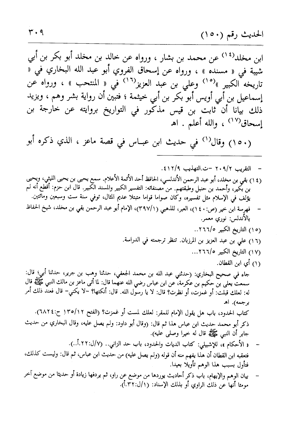 (150) وقال (¬1) في حديث ابن عباس في قصة ماعز، الذي ذكره أبو