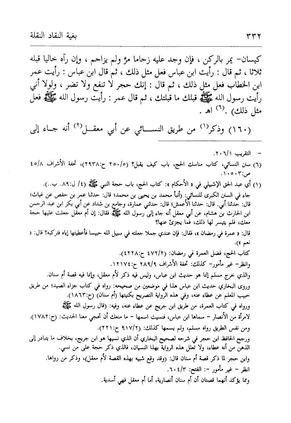 (¬1) أي عبد الحق الإشبيلي في "الأحكام": كتاب الحج, باب حجة النبي - صلى الله عليه وسلم - (4 / ل: 89. ب ..).