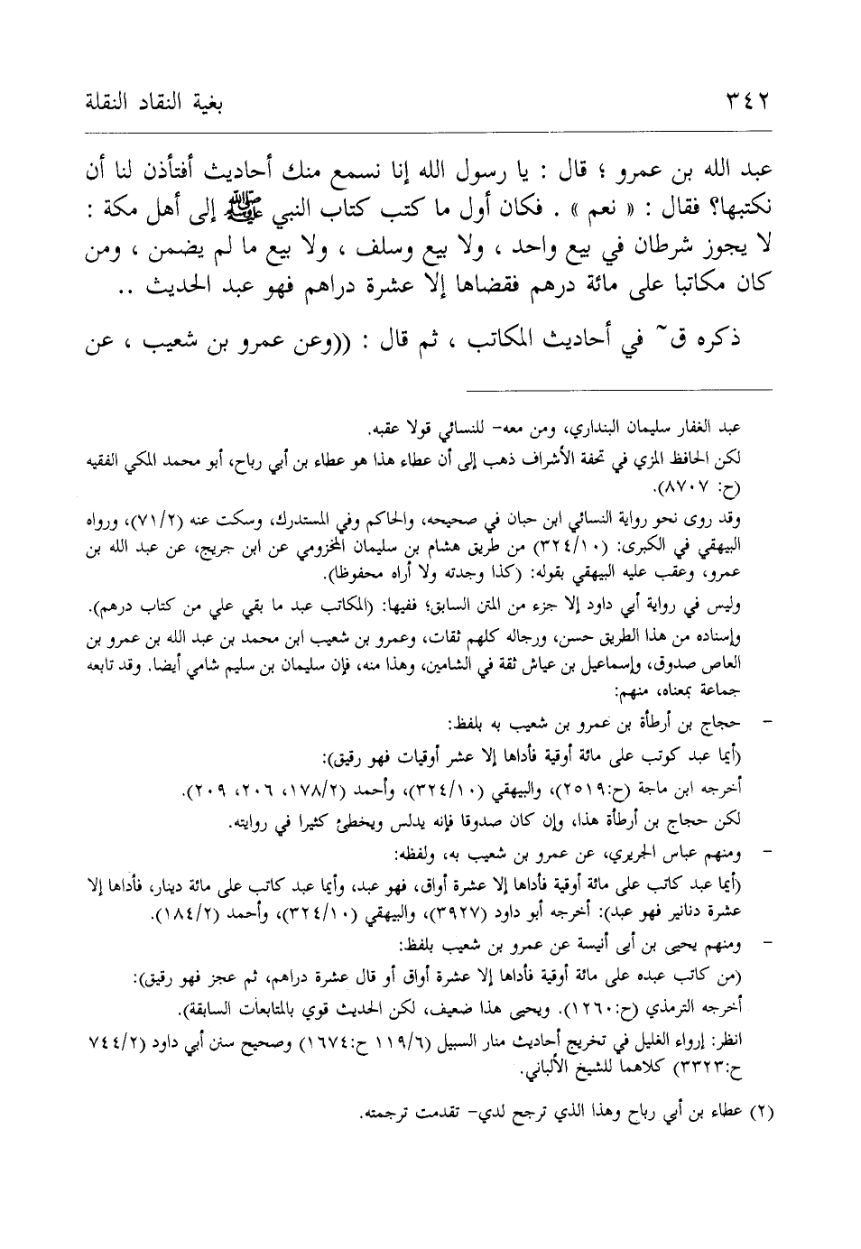 - ومنهم عباس الجريري، عن عمرو بن شعيب به، ولفظه: