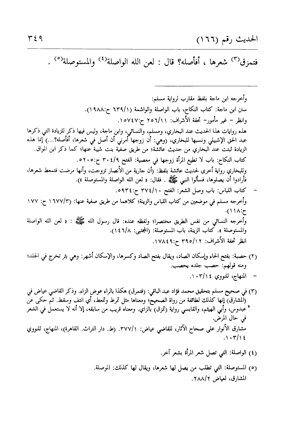 (¬5) المستوصلة: التي تطلب من يصل لها شعرها، ويقال لها كذلك: الموصلة. المشارق، لعياض 2/ 288.