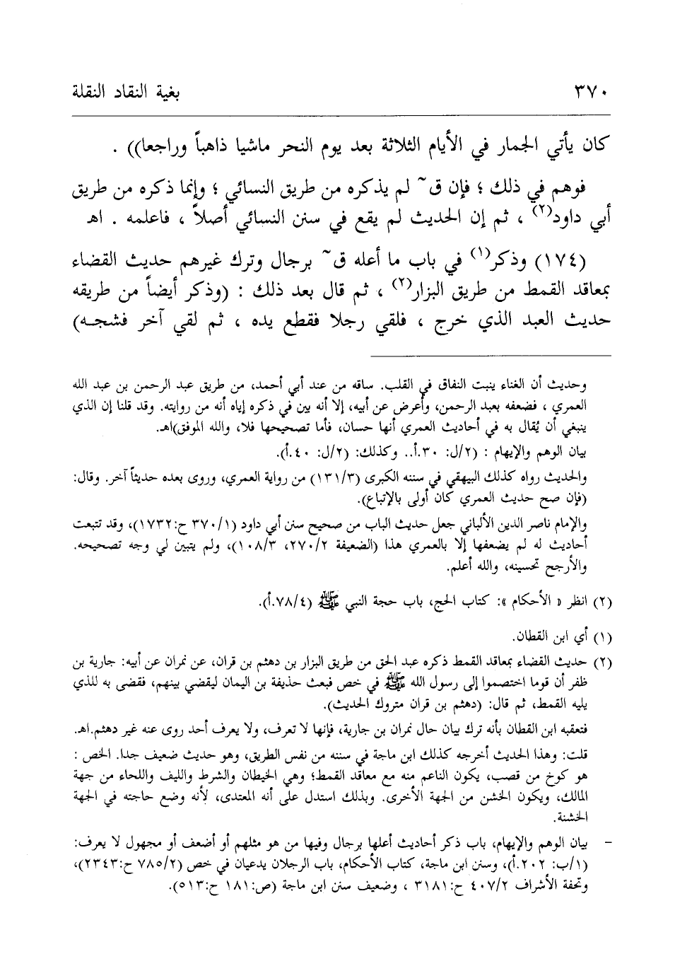 (¬2) انظر "الأحكام": كتاب الحج، باب حجة النبي - صلى الله عليه وسلم - (4/ 78. أ).