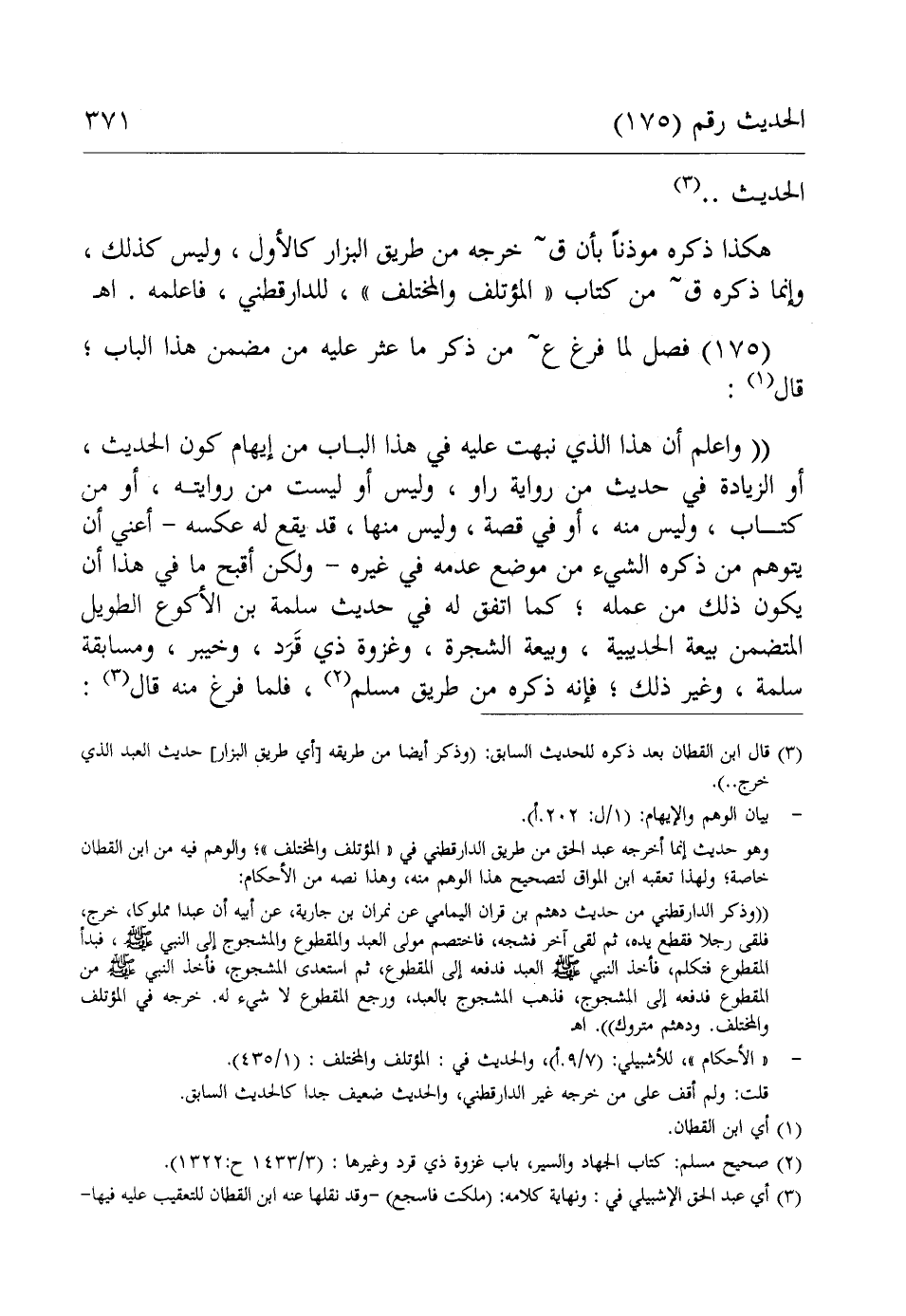 - "الأحكام"، للأشبيلي: (7/ 9. أ) والحديث في: المؤتلف والمختلف: (1/ 435).