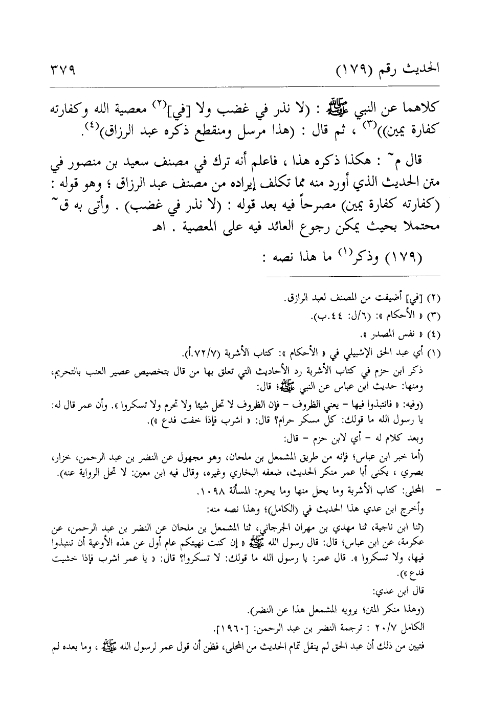 (¬1) أي عبد الحق الإشبيلي في "الأحكام": كتاب الأشربة (7/ 72. أ).