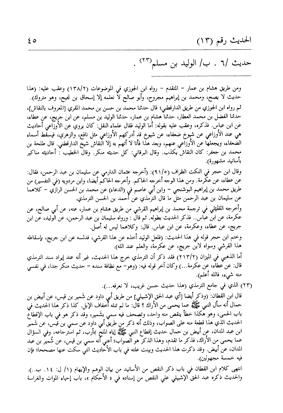 حديث/6. ب/ الوليد بن مسلم (¬23).