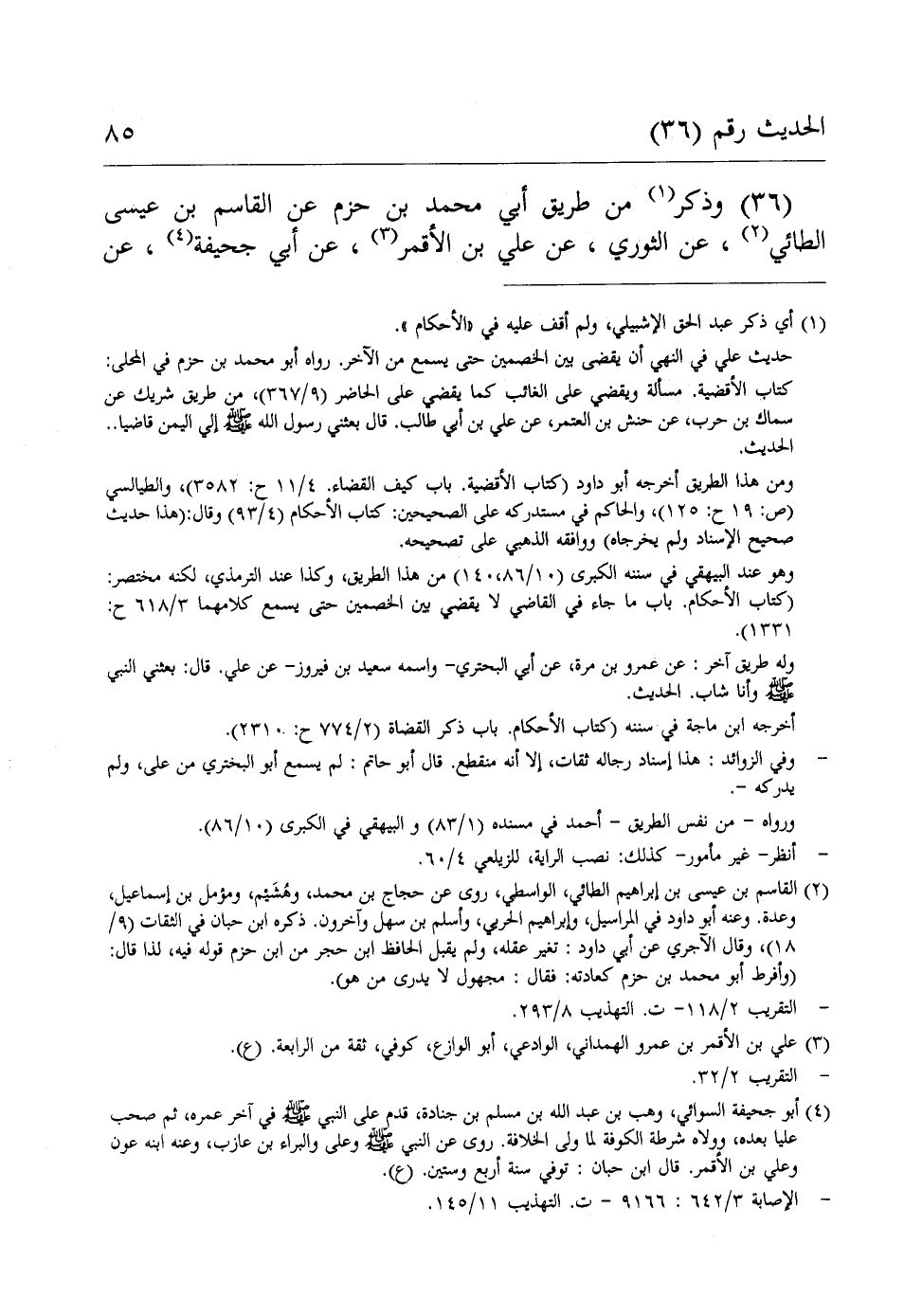 (36) وذكر (¬1) من طريق أبي محمد بن حزم عن القاسم بن عيسى الطائي (¬2)، عن الثوري، عن علي بن الأقمر (¬3)، عن أبي جحيفة (¬4)، عن