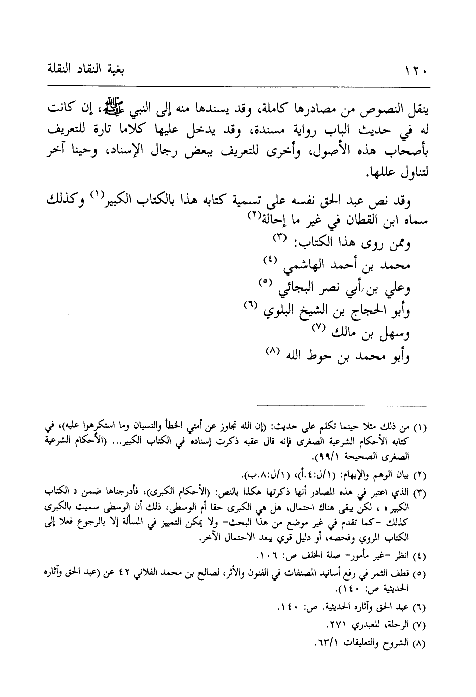 (¬6) عبد الحق وآثاره الحديثية. ص: 140.