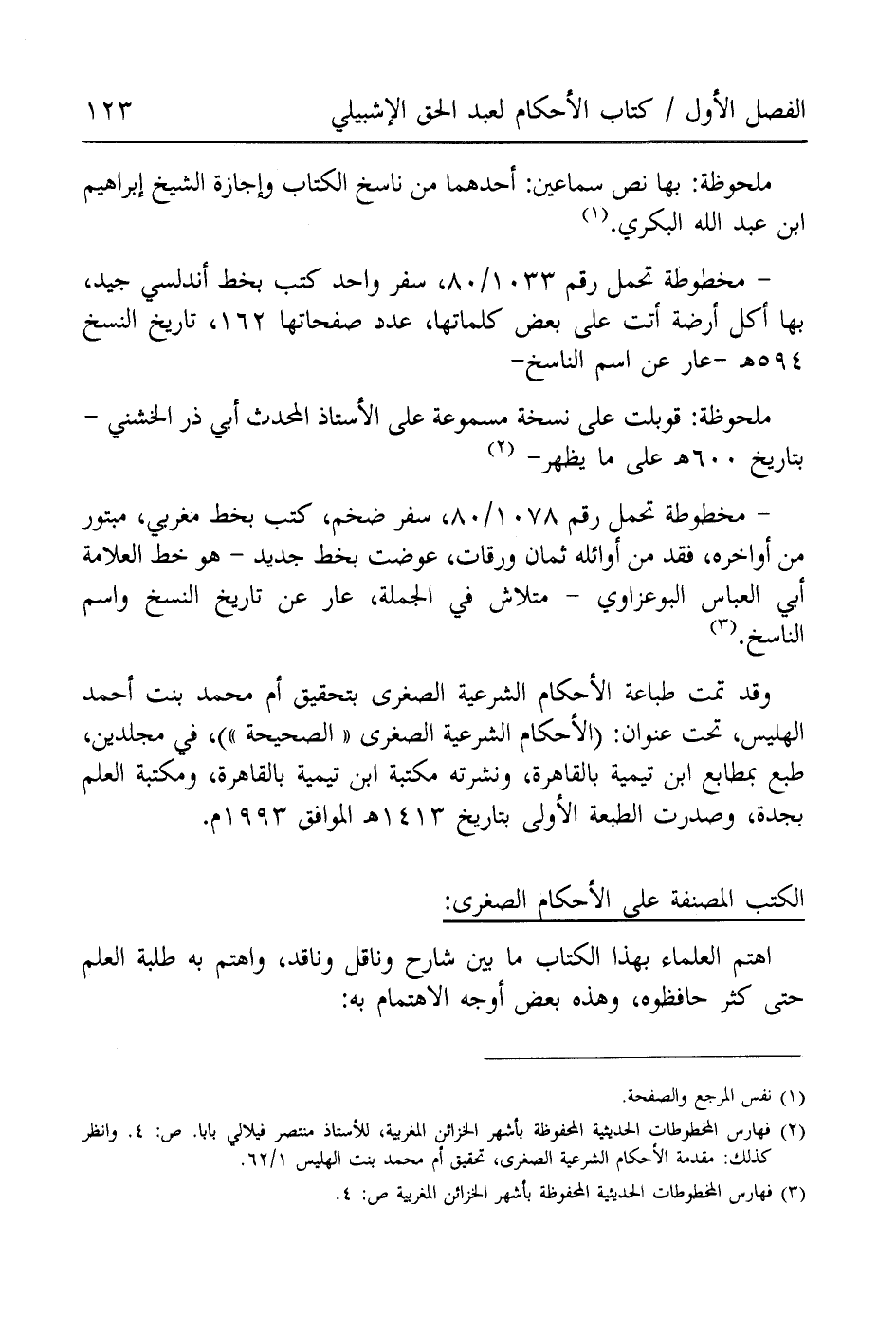 (¬2) فهارس المخطوطات الحديثة المحفوظة بأشهر الخزائن المغربية، للأستاذ منتصر فيلالي بابا. ص: 4. وانظر كذلك: مقدمة الأحكام الشرعية الصغرى، تحقيق أم محمد بنت الهليس 1/ 62.