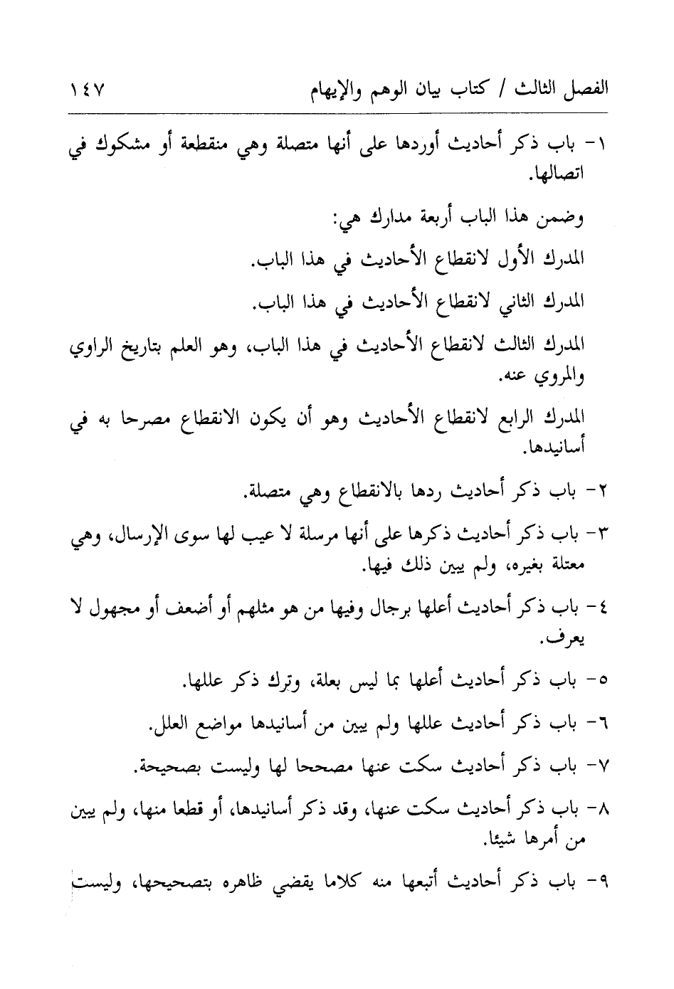 1 - باب ذكر أحاديث أوردها على أنها متصلة وهي منقطعة أو مشكوك في اتصالها.