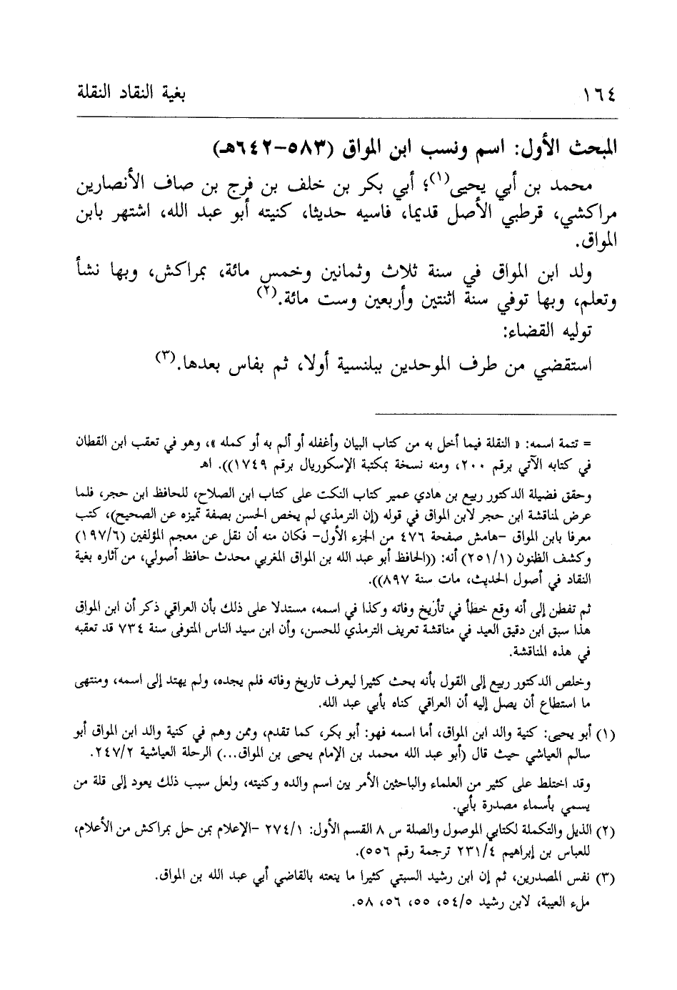 (¬1) أبو يحيى: كنية والد ابن المواق، أما اسمه فهو: أبو بكر، كما تقدم، وممن وهم في كنية والد ابن المواق أبو سالم العياشي حيث قال (أبو عبد الله محمد بن الإمام يحيى بن المواق ...) الرحلة العياشية 2/ 247.