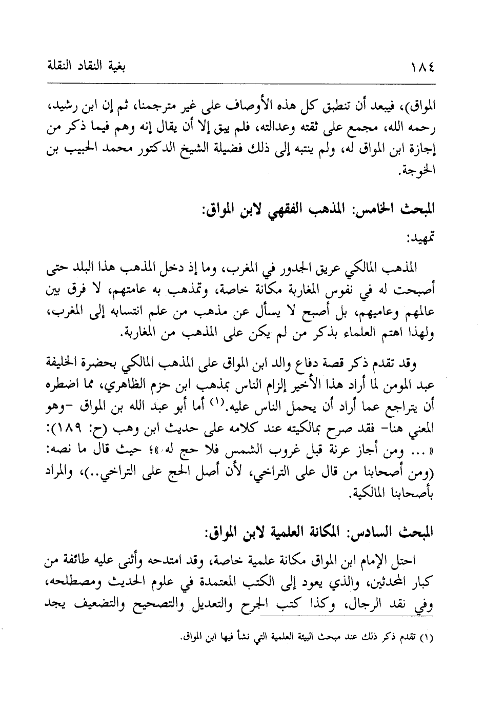 (¬1) تقدم ذكر ذلك عند مبحث البيئة العلمية التي نشأ فيها ابن المواق.