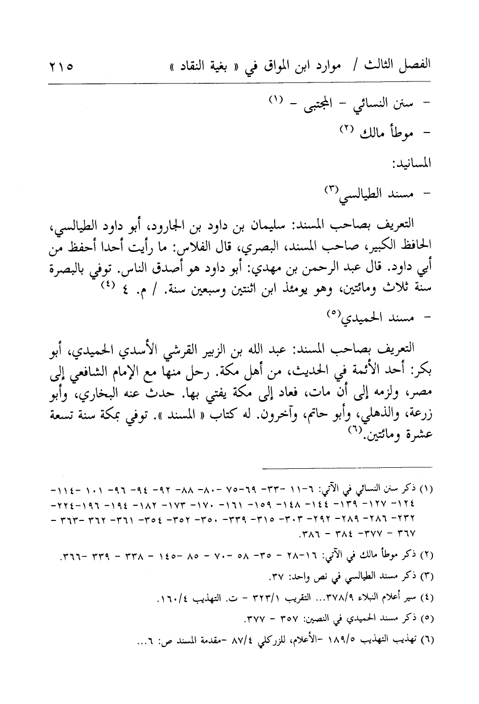 (¬5) ذكر مسند الحميدي في النصين: 357 - 377.