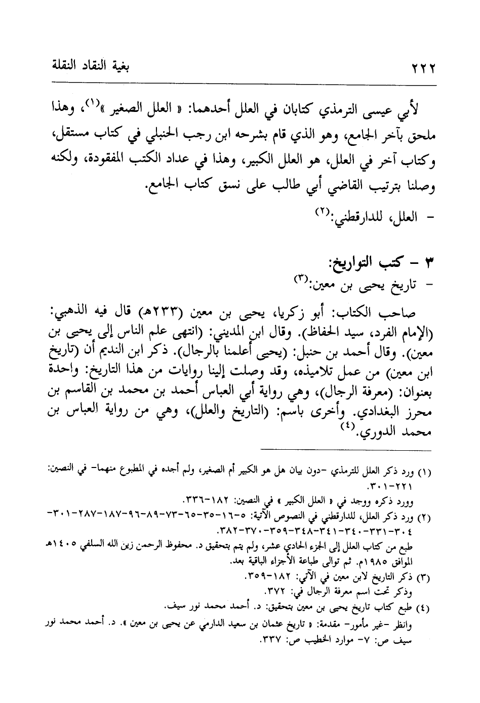 (¬4) طبع كتاب تاريخ يحيى بن معين بتحقيق: د. أحمد محمد نور سيف.