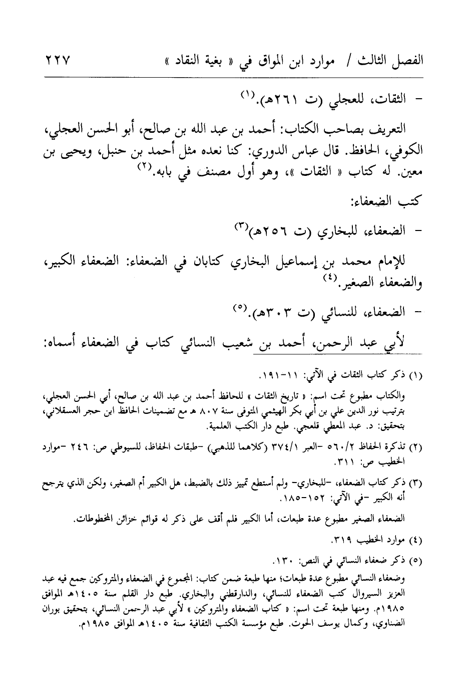 - الضعفاء، للنسائي (ت 303 هـ). (¬5)