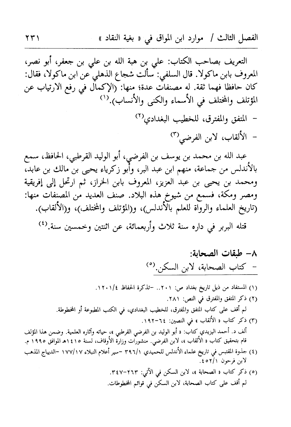 (¬5) ذكر كتاب "الصحابة"، لإبن السكن في الآتي: 263 - 347.