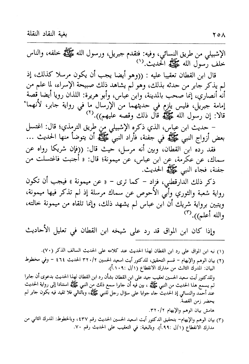 (¬3) ببيان الوهم والإيهام -بتحقيق الدكتور آت سعيد الحسين الحديث رقم 437، وبالخطوط: المدرك الثاني من مدارك الإنقطاع (1/ ل: 99. أ). وبالبغية: في التعقيب على الحديث رقم 70.