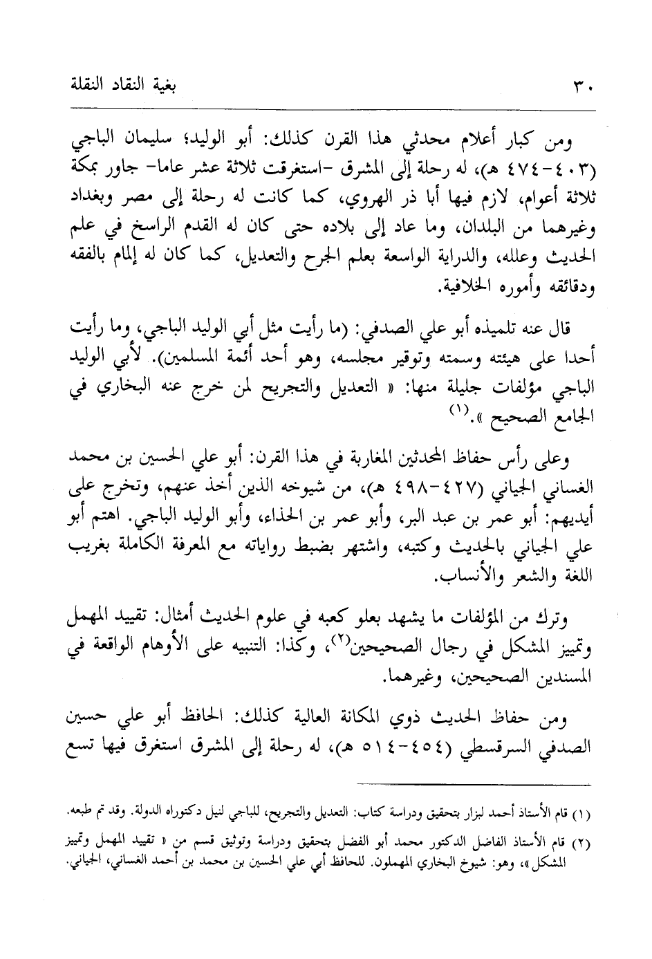 (¬2) قام الأستاذ الفاضل الدكتور محمد أبو الفصل بتحقيق ودراسة وتوثيق قسم من "تقييد المهمل وتمييز المشكل"، وهو: شيوخ البخاري المهملون. للحافظ أبي علي الحسين بن محمد بن أحمد الغساني، الجياني.