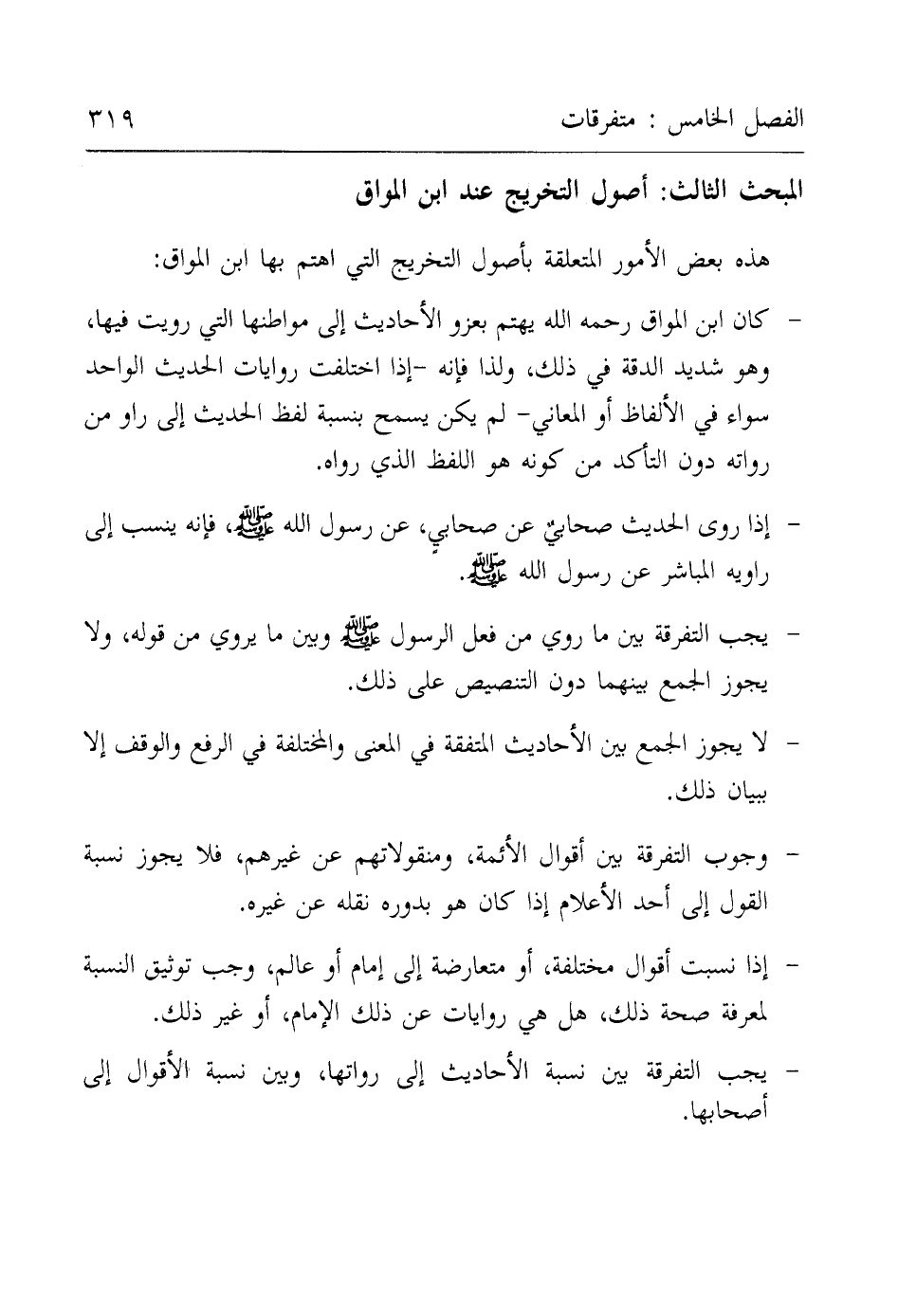 هذه بعض الأمور المتعلقة بأصول التخريج التي اهتم بها ابن المواق: