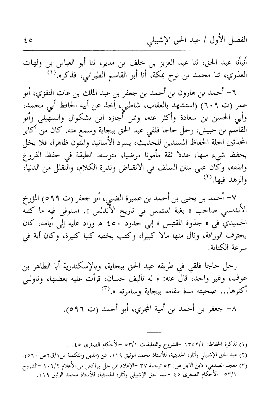 (¬2) عبد الحق الإشبيلي وآثاره الحديثية، للأستاذ محمد الوثيق 119، عن (الذيل والتكملة س 1/ ق 2 ص 560).