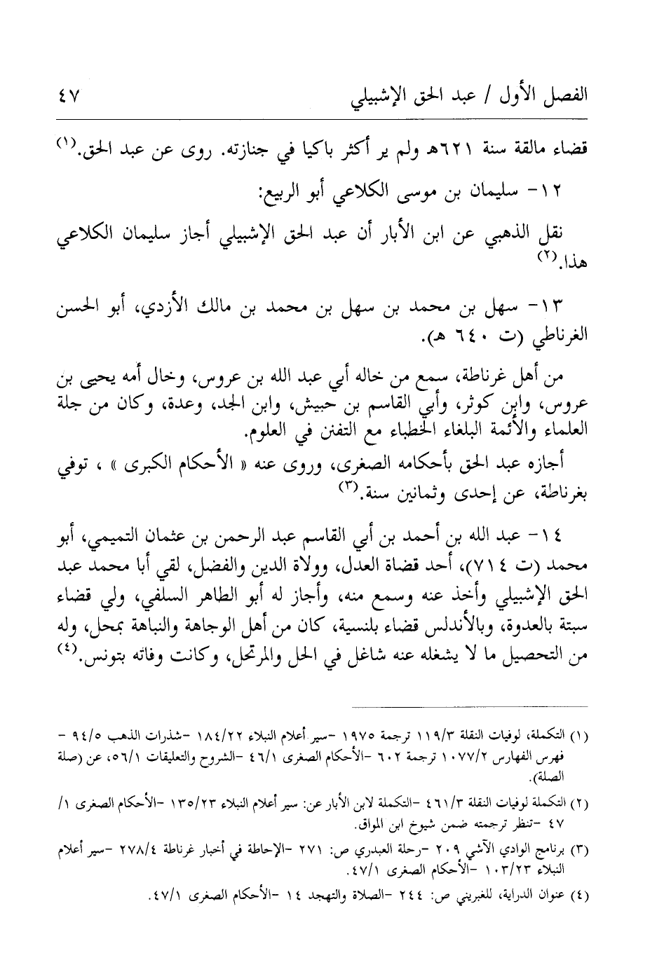 (¬3) برنامج الوادي الآشي 209 - رحلة العبدري ص: 271 - الإحاطة في أخبار غرناطة 4/ 278 - سير أعلام النبلاء 23/ 103 - الأحكام الصغرى 1/ 47.