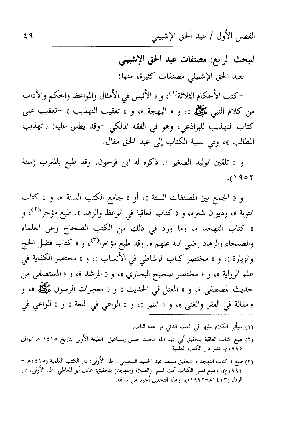 المبحث الرابع: مصنفات عبد الحق الإشبيلي: