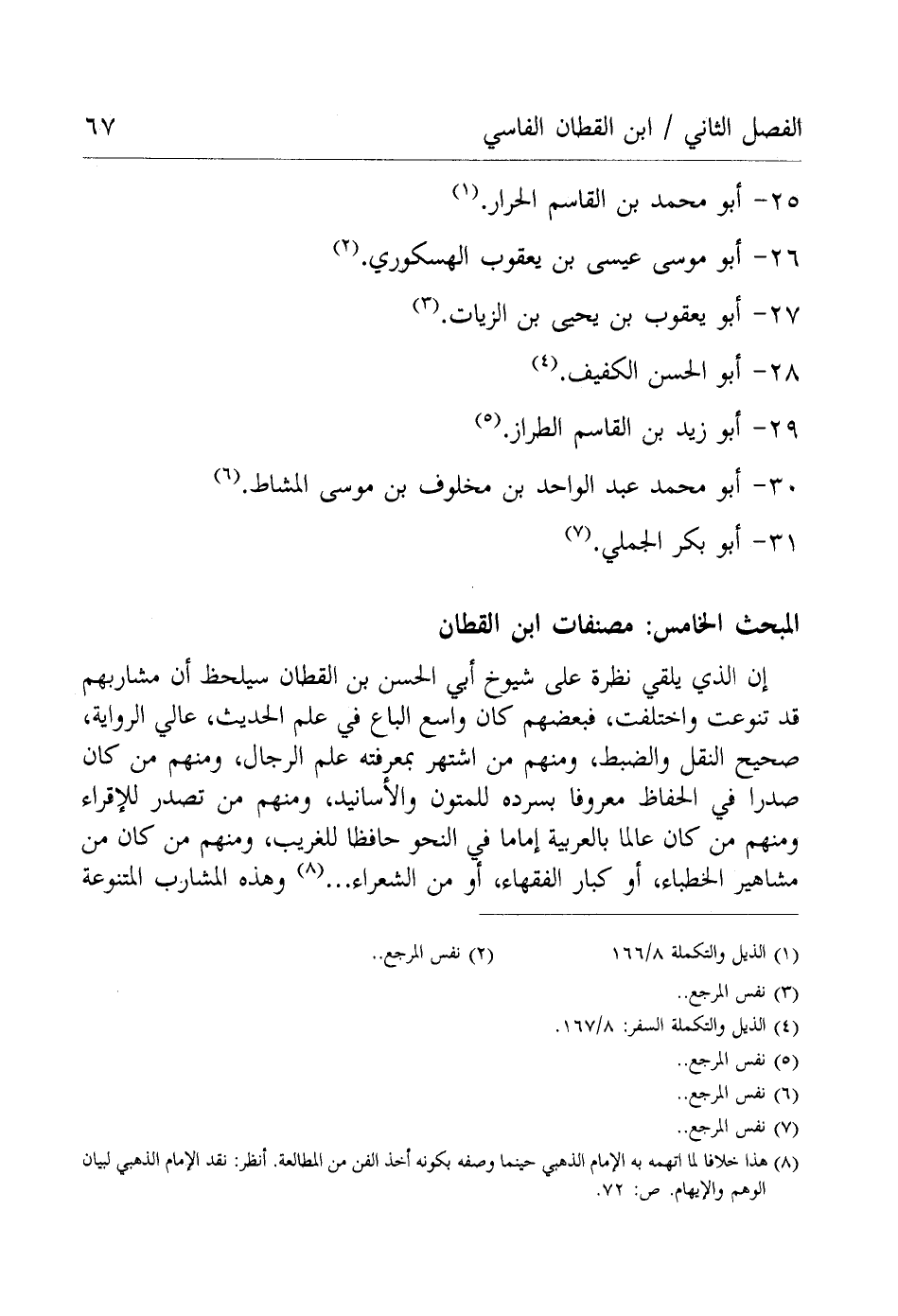 (¬8) هذا خلافا لما اتهمه به الإمام الذهبي حينما وصفه بكونه أخذ الفن من الطالعة. انظر: نقد الإمام الذهبي لبيان الوهم والإيهام. ص: 72.