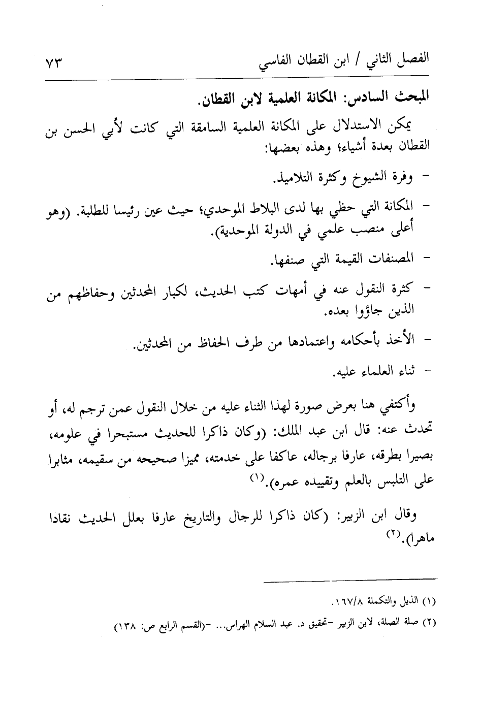 المبحث السادس: المكانة العلمية لإبن القطان: