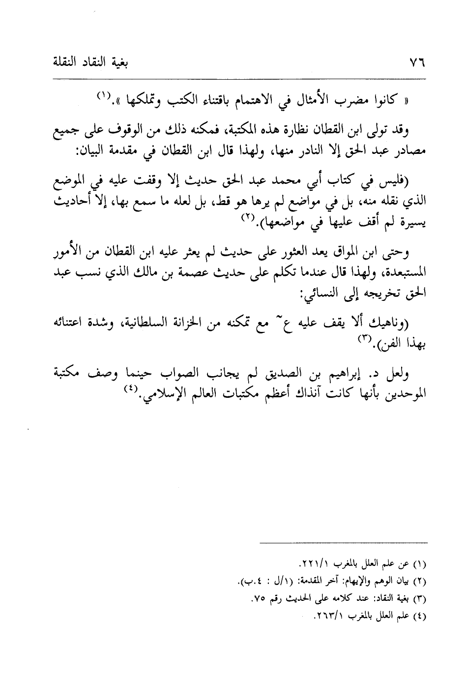 (¬3) بغية النقاد: عند كلامه على الحديث رقم 75.