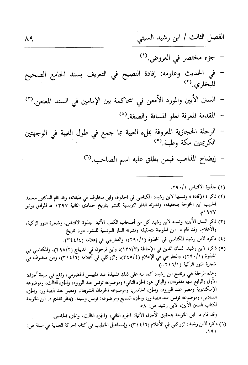 (¬6) ذكره لإبن رشيد: الزركلي في الأعلام (6/ 314)، وإسماعيل الخطيب في كتابه الحركة العلمية في سبتة ص: 191.