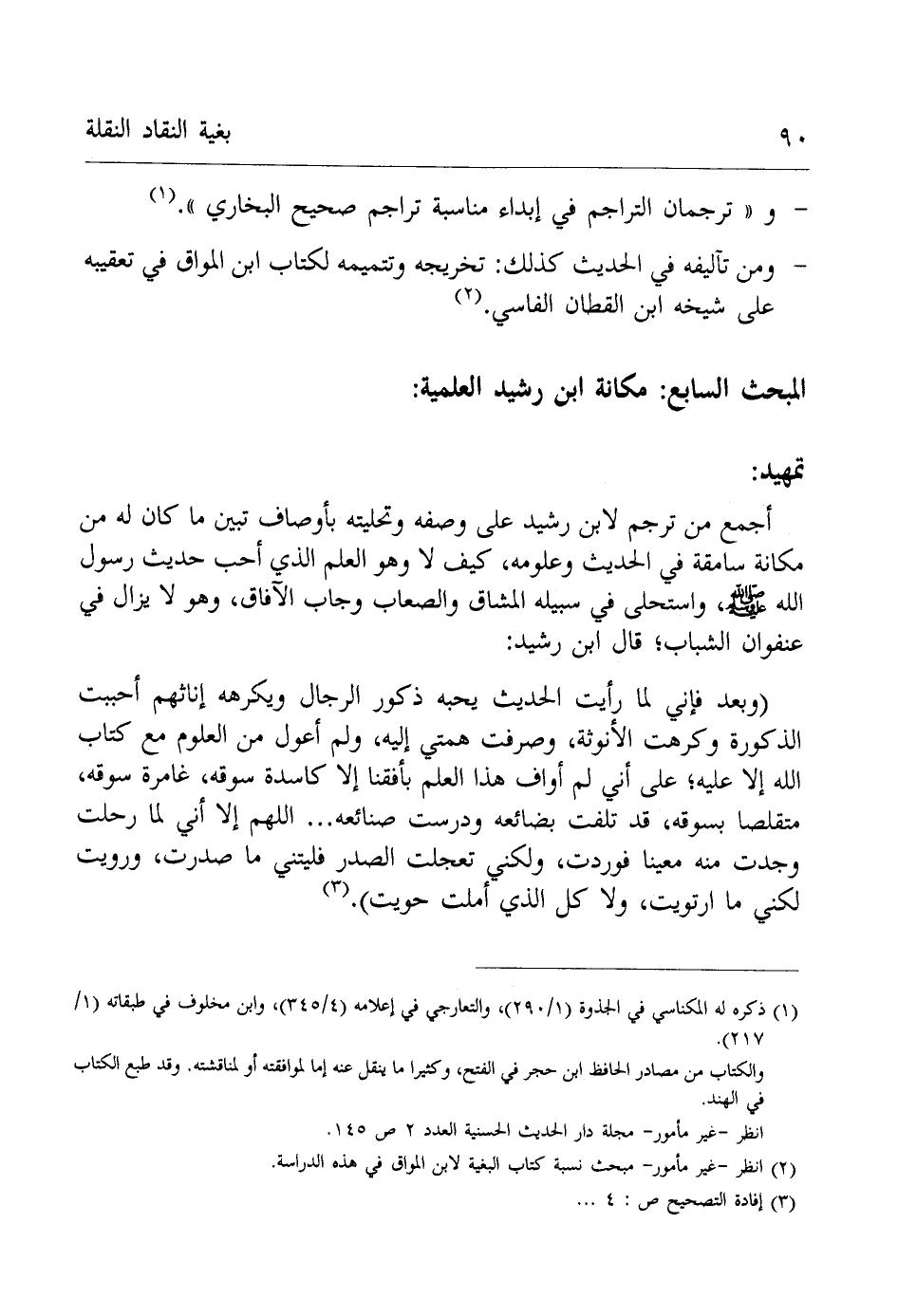 المبحث السابع: مكانة ابن رشيد العلمية: