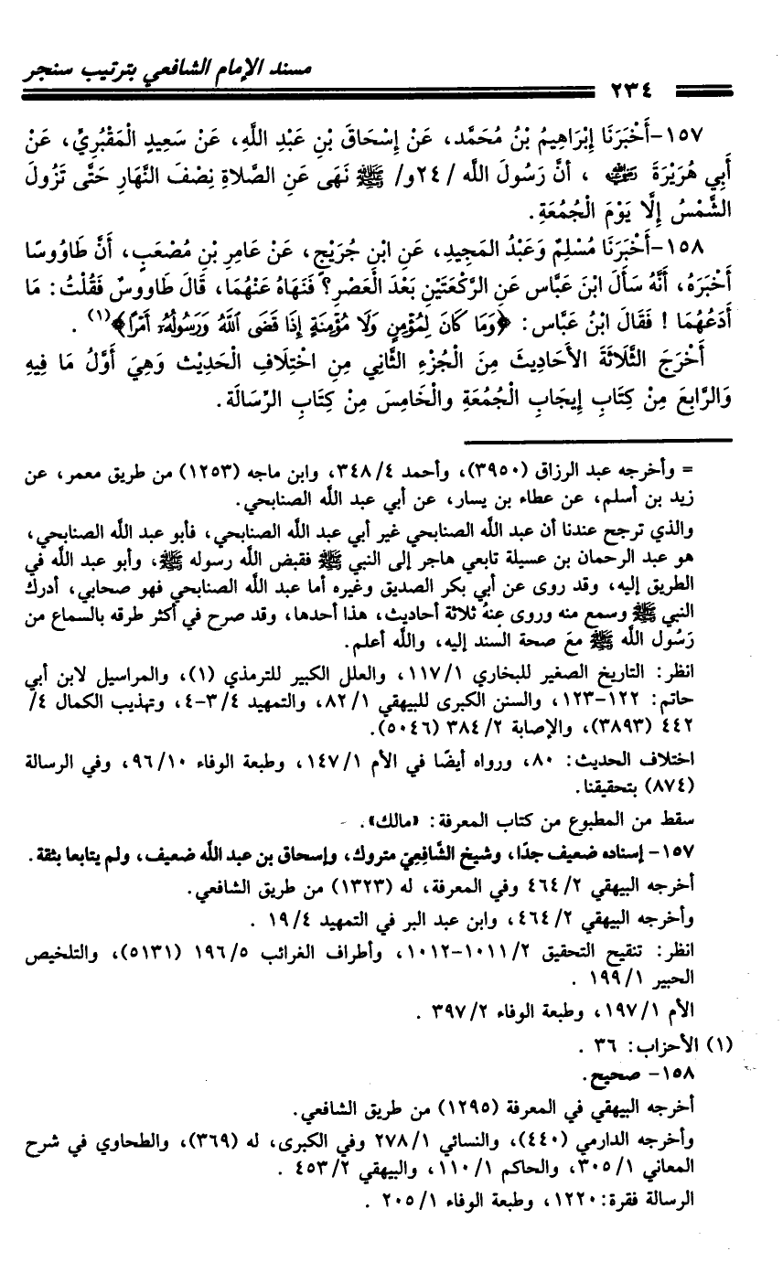 كتاب مسند الشافعي - ترتيب سنجر (اسم الجزء: 1)