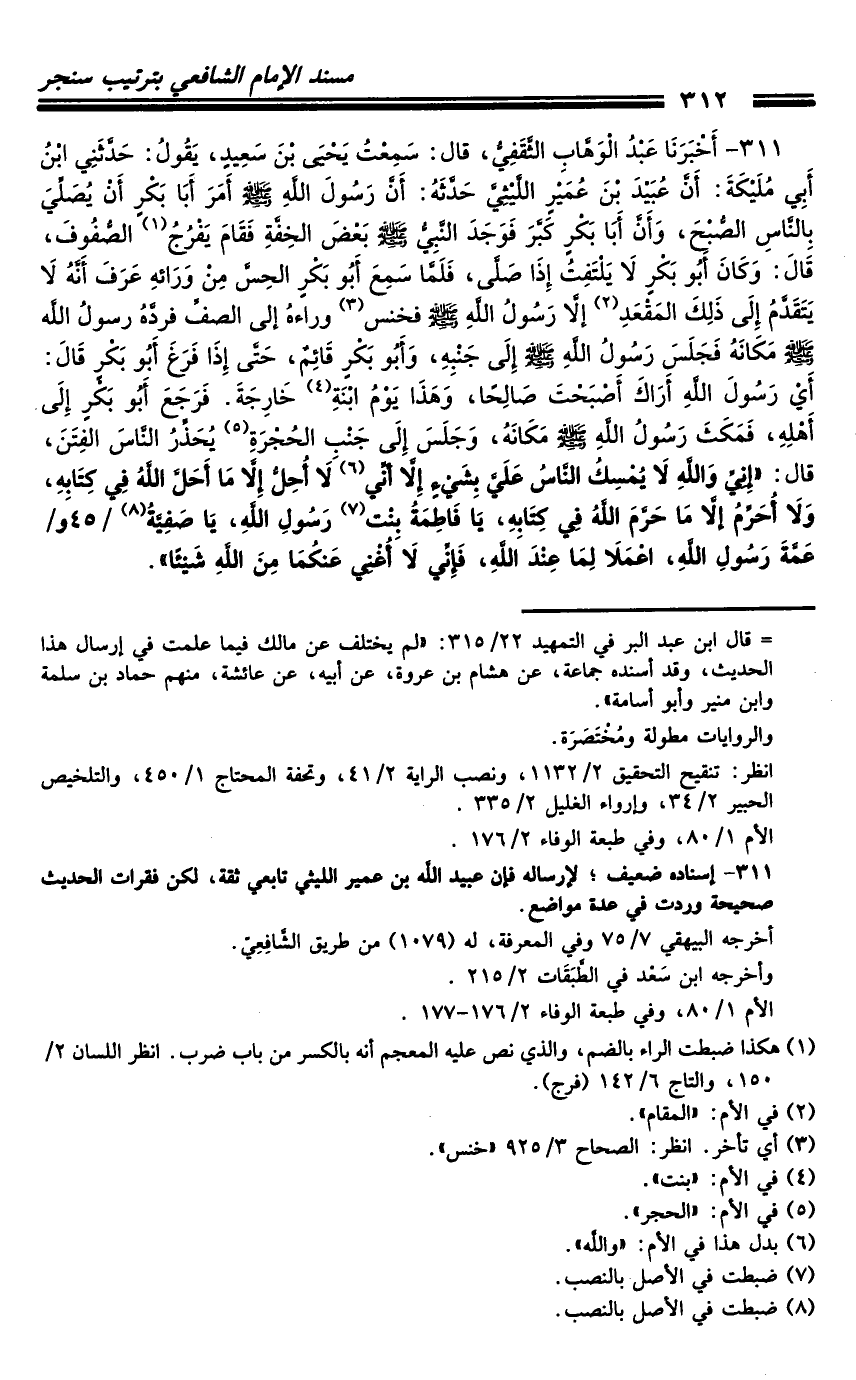 كتاب مسند الشافعي - ترتيب سنجر (اسم الجزء: 1)