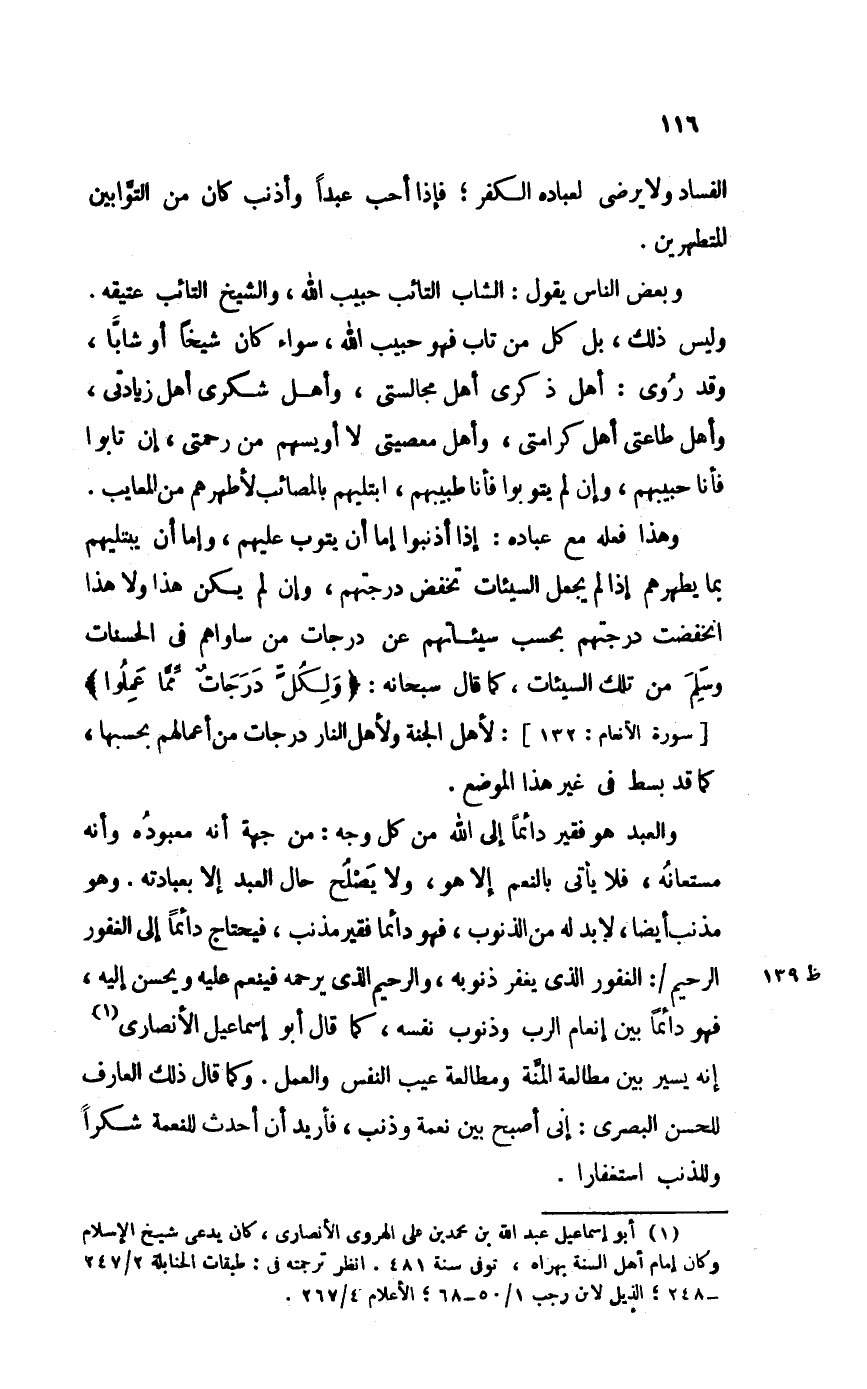 وَالْعَبْد هُوَ فَقير دَائِما إِلَى الله من كل وَجه من جِهَة أَنه معبوده وَأَنه مستعانه فَلَا يَأْتِي بِالنعَم إِلَّا هُوَ وَلَا يصلح حَال العَبْد إِلَّا بِعِبَادَتِهِ وَهُوَ مذنب أَيْضا لَا بُد لَهُ من الذُّنُوب فَهُوَ دَائِما فَقير مذنب فَيحْتَاج دَائِما وَإِلَى الغفور الرَّحِيم الغفور الَّذِي يغْفر ذنُوبه والرحيم الَّذِي يرحمه فينعم عَلَيْهِ وَيحسن إِلَيْهِ فَهُوَ دَائِما بَين إنعام الرب وذنوب نَفسه كَمَا قَالَ أَبُو إِسْمَاعِيل الْأنْصَارِيّ إِنَّه يسير بَين مطالعة الْمِنَّة ومطالعة عيب النَّفس وَالْعَمَل وكما قَالَ ذَلِك الْعَارِف لِلْحسنِ الْبَصْرِيّ إِنِّي أصبح بَين نعْمَة وذنب فَأُرِيد أَن أحدث للنعمة شكرا وللذنب اسْتِغْفَارًا