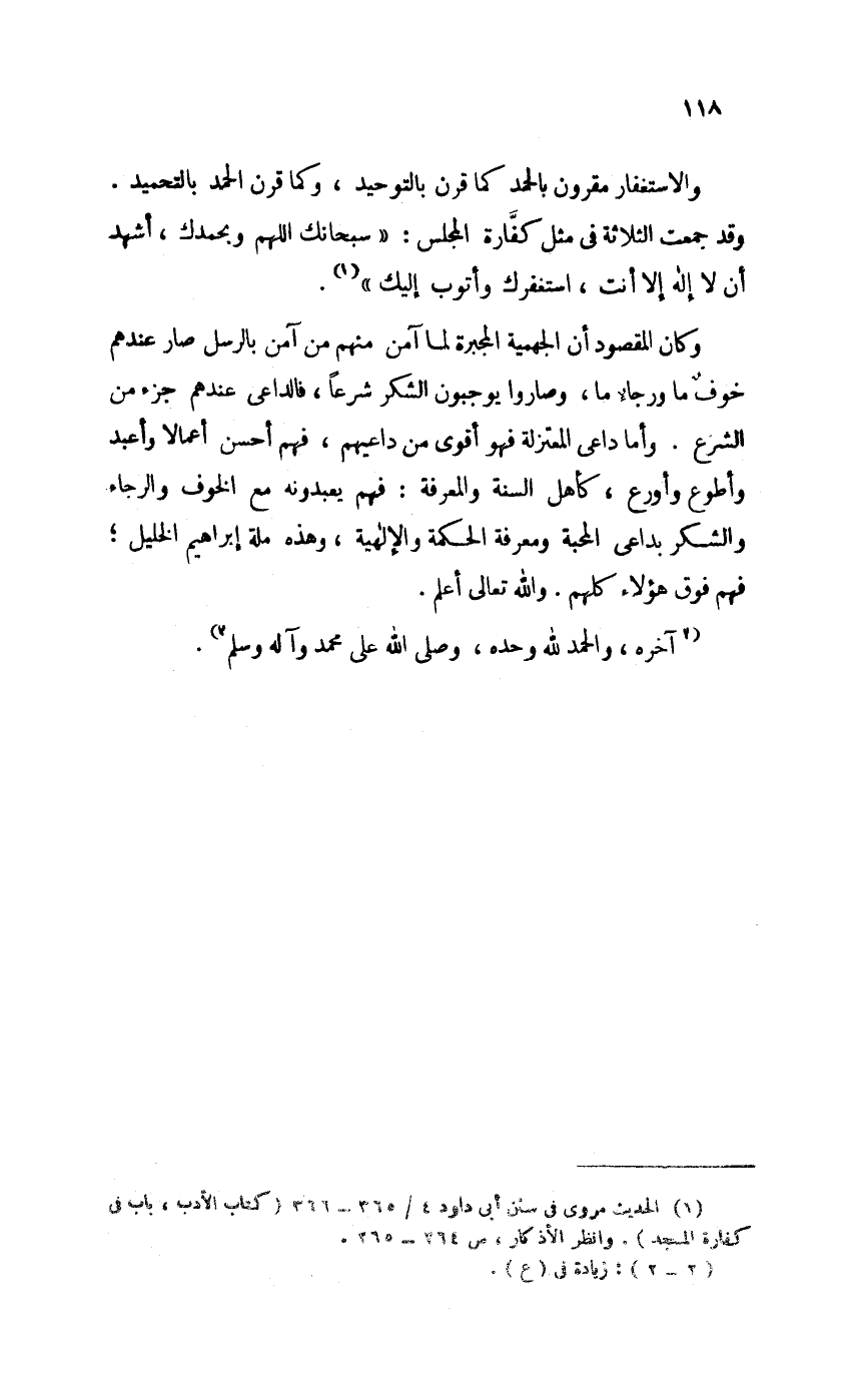 والإستغفار مقرون بِالْحَمْد كَمَا قرن بِالتَّوْحِيدِ وكما قرن الْحَمد بالتحميد وَقد جمعت الثَّلَاثَة فِي مثل كَفَّارَة الْمجْلس سُبْحَانَكَ اللَّهُمَّ وَبِحَمْدِك أشهد أَن لَا إِلَه إِلَّا أَنْت أستغفرك وَأَتُوب إِلَيْك