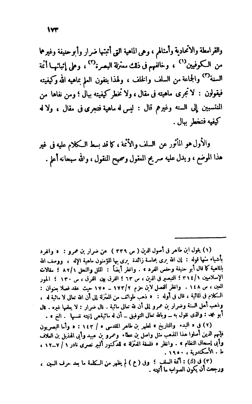 والقرامطة والإتحادية وأمثالهم وَهِي الْمَاهِيّة الَّتِي أثبتها ضرار وَأَبُو حنيفَة وَغَيرهمَا من الْكُوفِيّين وَخَالفهُم فِي ذَلِك معتزلة الْبَصْرَة وعَلى إِثْبَاتهَا أَئِمَّة السّنة وَالْجَمَاعَة من السّلف وَالْخلف وَلِهَذَا ينفون الْعلم بماهيه الله وكيفيته فَيَقُولُونَ لَا تجْرِي ماهيته فِي مقَال وَلَا تخطر كيفيته ببال وَمن نفاها من المنتسبين إِلَى السّنة وَغَيرهم قَالَ لَيْسَ لَهُ مَاهِيَّة فتجري فِي مقَال وَلَا لَهُ كيفيه فتخطر ببال