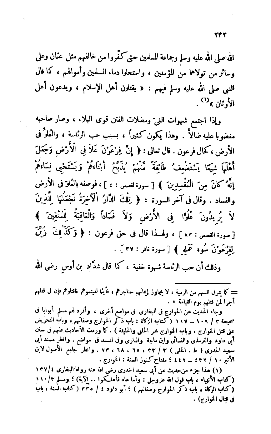 الله صلى الله عَلَيْهِ وَسلم وَجَمَاعَة الْمُسلمين حَتَّى كفرُوا من خالفهم مثل عُثْمَان وَعلي وَسَائِر من تولاهما من الْمُؤمنِينَ وَاسْتَحَلُّوا دِمَاء الْمُسلمين وَأَمْوَالهمْ كَمَا قَالَ النَّبِي صلى الله عَلَيْهِ وَسلم فيهم يقتلُون أهل الْإِسْلَام وَيدعونَ أهل الْأَوْثَان