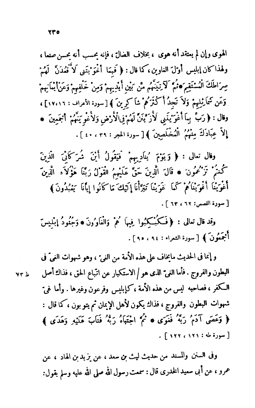 وَإِنَّمَا فِي الحَدِيث مَا يخَاف على هَذِه الْأمة من الغي وَهُوَ شهوات الغي فِي الْبُطُون والفروج فَأَما الغي الَّذِي هُوَ الإستكبار عَن ابْتَاعَ الْحق فَذَاك أصل الْكفْر فصاحبه لَيْسَ من هَذِه الْأمة كإبليس وَفرْعَوْن وَغَيرهَا وَأما غي شهوات الْبُطُون والفروج فَذَاك يكون لأهل الْإِيمَان ثمَّ يتوبون كَمَا قَالَ وَعصى آدم ربه فغوى ثمَّ اجتباه ربه فَتَابَ عَلَيْهِ وَهدى [سُورَة طه 121 - 122]