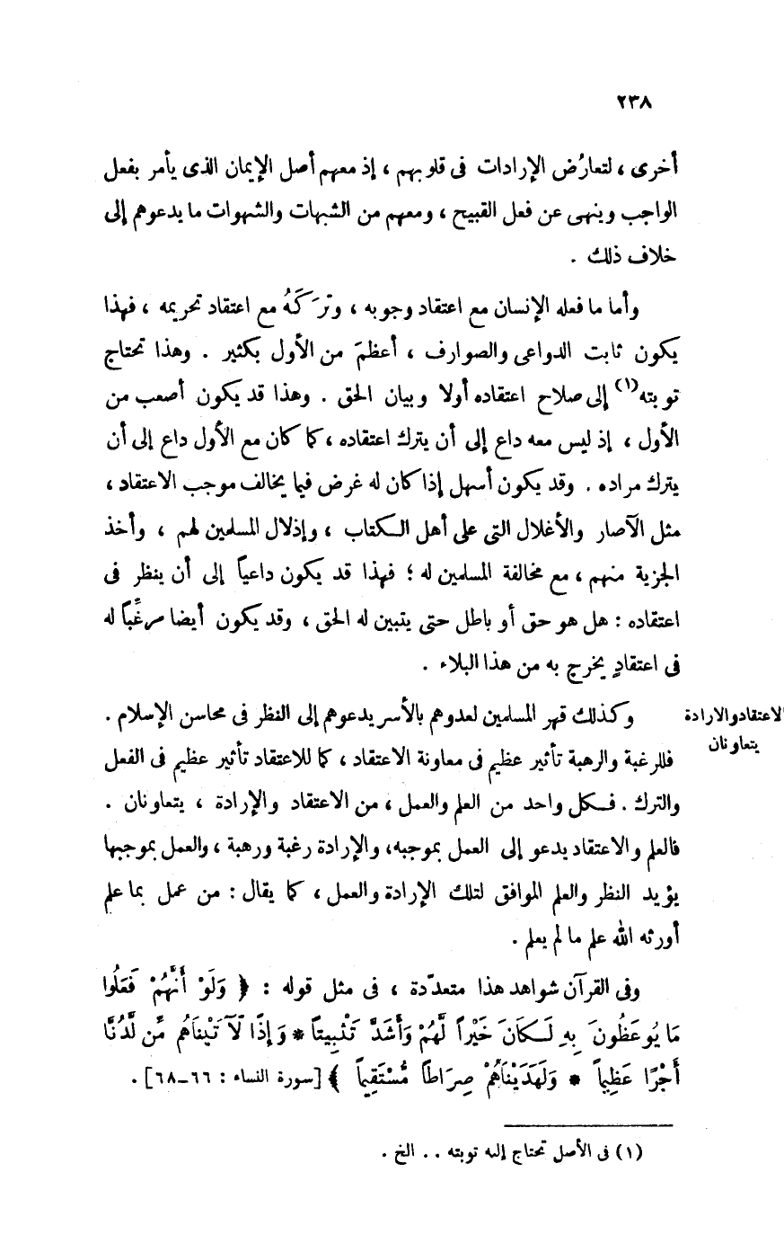 الِاعْتِقَاد والإرادة يتعاونان