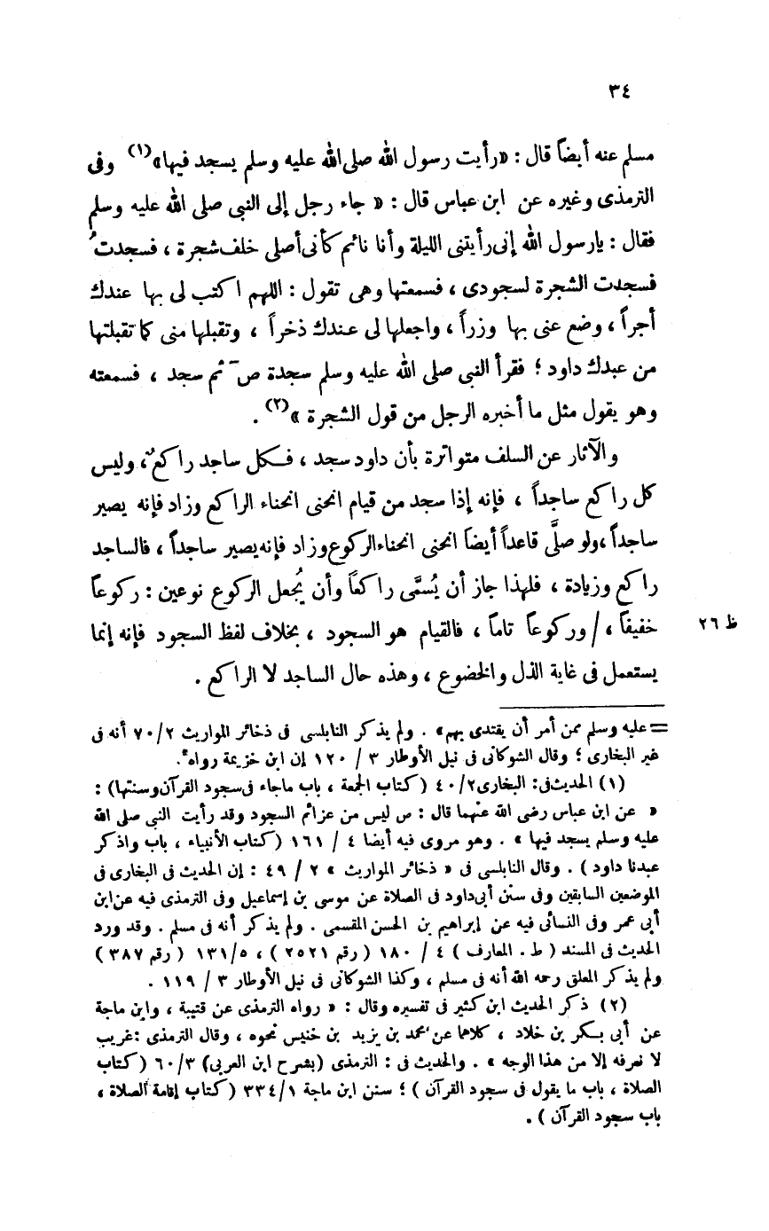 مُسلم عَنهُ أَيْضا قَالَ رَأَيْت رَسُول الله صلى الله عَلَيْهِ وَسلم يسْجد فِيهَا وَفِي التِّرْمِذِيّ وَغَيره عَن ابْن عَبَّاس قَالَ جَاءَ رجل إِلَى النَّبِي صلى الله عَلَيْهِ وَسلم فَقَالَ يَا رَسُول الله إِنِّي رَأَيْتنِي اللَّيْلَة وَأَنا نَائِم كَأَنِّي أُصَلِّي خلف شَجَرَة فسجدت الشَّجَرَة لسجودي فسمعتها وَهِي تَقول اللَّهُمَّ اكْتُبْ لي بهَا عنْدك أجرا وضع عني بهَا وزرا وَاجْعَلْهَا لي عنْدك ذخْرا وتقبلها مني كَمَا تقبلتها من عَبدك دَاوُد فَقَرَأَ النَّبِي صلى الله عَلَيْهِ وَسلم سَجْدَة ص ثمَّ سجد فَسَمعته وَهُوَ يَقُول مثل مَا أخبرهُ الرجل من قَول الشَّجَرَة