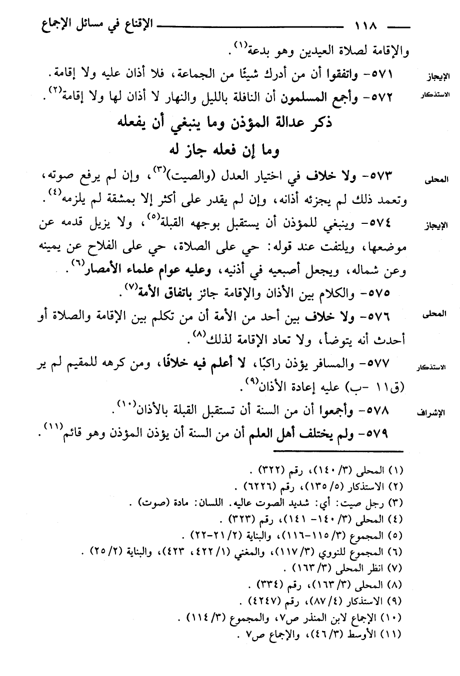 ٥٧٨ - وأجمعوا أن من السنة أن تستقبل القبلة بالأذان.