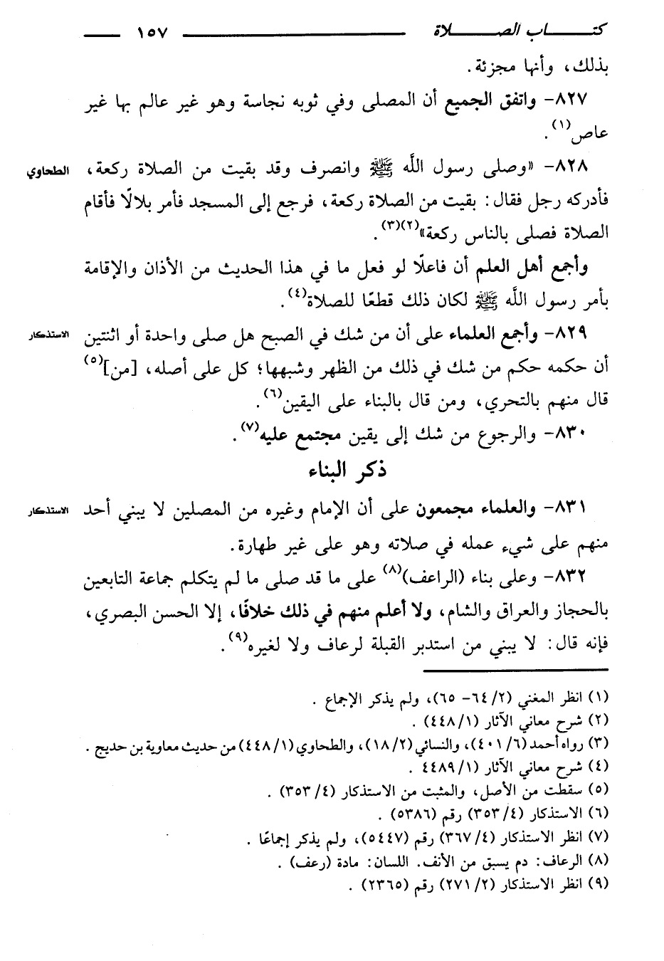 ٨٣١ - والعلماء مجمعون على أن الإمام وغيره من المصلين لا يبني أحد منهم على شيء عمله في صلاته وهو على غير طهارة.