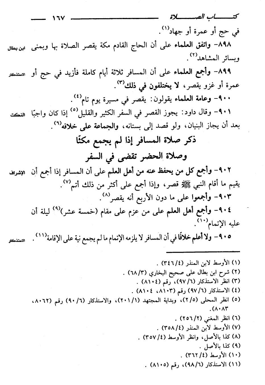 ٨٩٨ - واتفق العلماء على أن الحاج القادم مكة يقصر الصلاة بها وبمنى وبسائر المشاهد.
