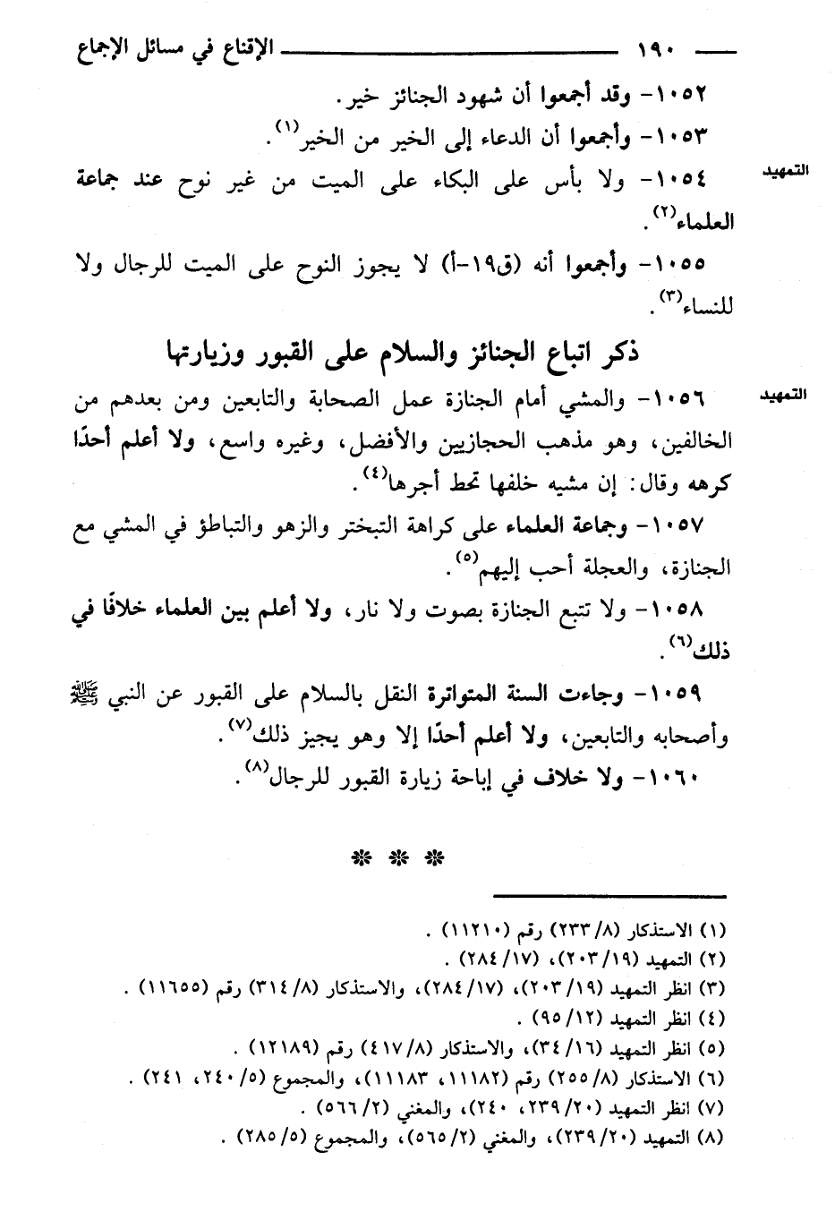 ١٠٥٢ - وقد أجمعوا أن شهود الجنائز خير.