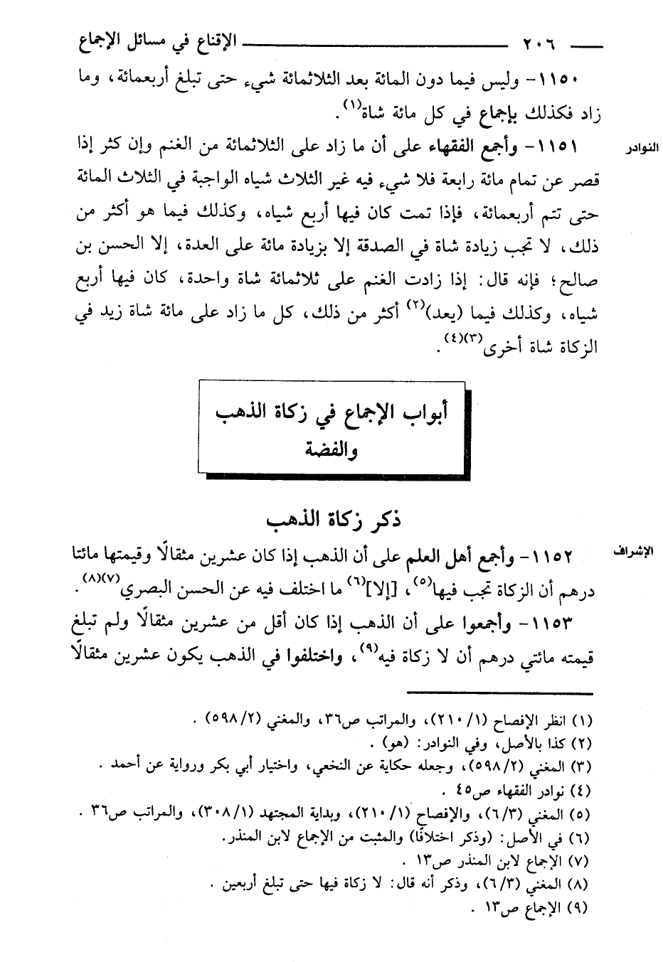 ١١٥٢ - وأجمع أهل العلم على أن الذهب إذا كان عشرين مثقالاً وقيمتها مائتا درهم أن الزكاة تجب فيها، [إلا] ما اختلف فيه عن الحسن البصري.