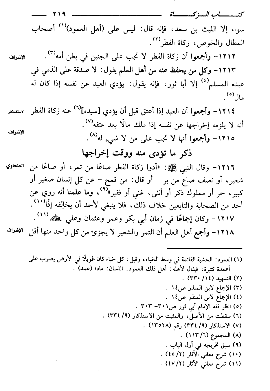 ١٢١٢ - وأجمعوا أن زكاة الفطر لا تجب على الجنين في بطن أمه.